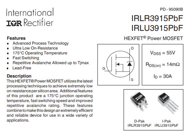 HuisNieuwsIRLU3915PBF HEXFET® POWER MOSFET 55V Single N-Channel Hexfet Power Mosfet in een i-Pak-pakket